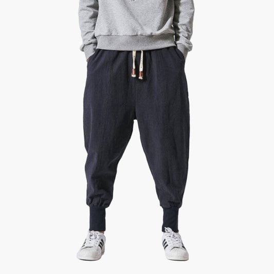 Men's Relaxed Fit Japanese-Style Drawstring Trousers for Everyday Comfort and Outdoor Use