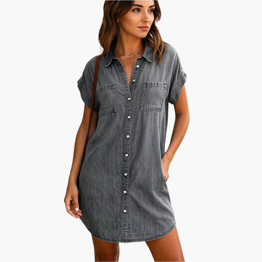 Women's Casual Button-Front Denim Shirt Dress for Everyday Style
