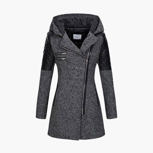 Women's Hooded Asymmetrical Zip Tweed Coat – Modern Winter Outerwear