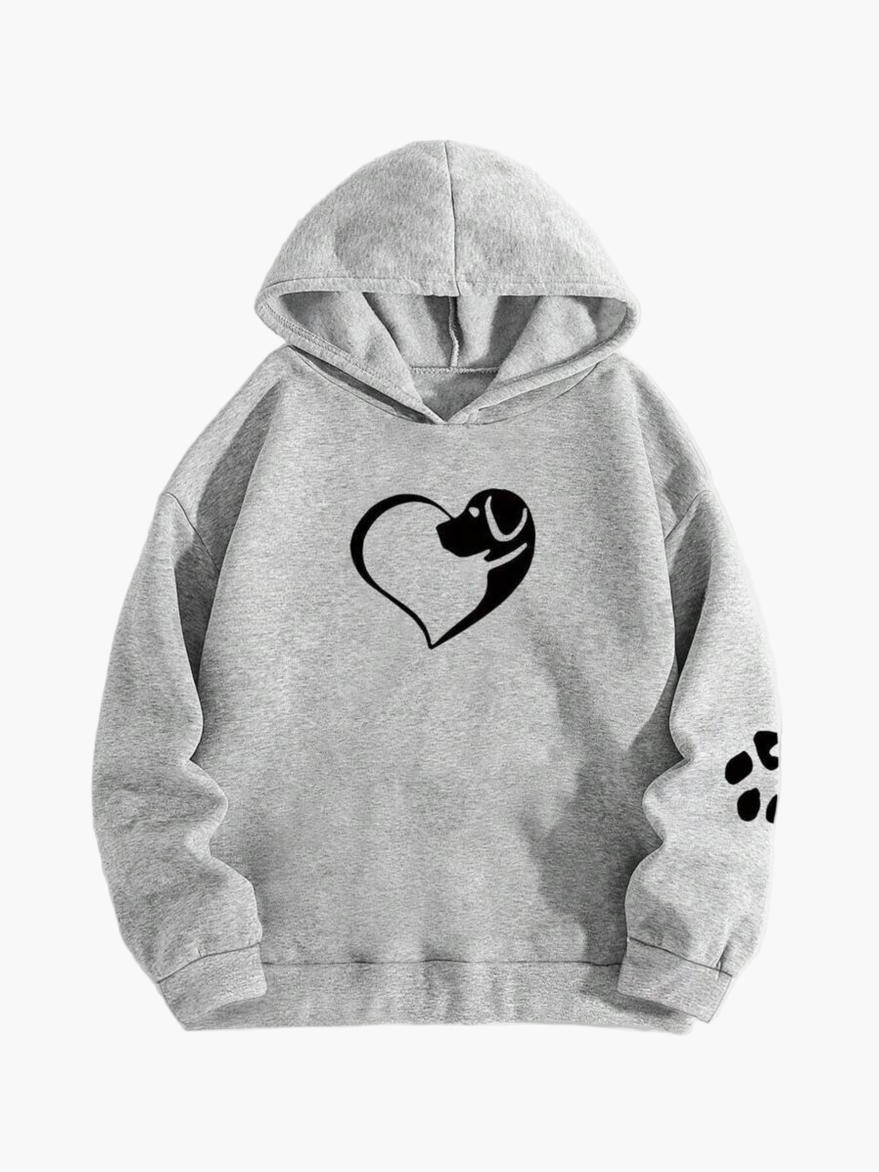 Women's Dog Lover Casual Hoodie with Heart and Paw Print – Charity Support